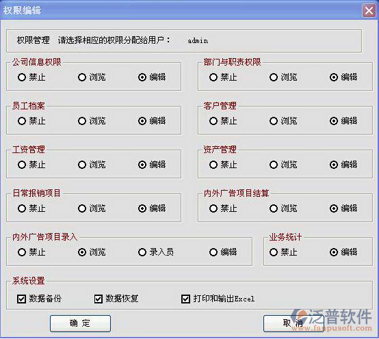 泛普軟件廣告公司管理系統(tǒng)(網(wǎng)絡(luò)版)是一套通用于中小型廣告行業(yè)的管理系統(tǒng),它操作簡(jiǎn)單,方便實(shí)用,廣告公司管理軟件功能強(qiáng)大,集用戶管理,客戶管理,員工管理,項(xiàng)目管理,財(cái)務(wù)管理,報(bào)表打印等為一體,是一套優(yōu)秀的系統(tǒng)軟件。
