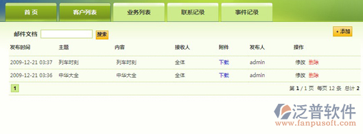 泛普軟件泛普OA系統(tǒng)客戶資料管理軟件用于客戶資料和客戶購買產品資料及付款管理,可以按客戶區(qū)域、客戶、產品類別、產品統(tǒng)計產品銷售數(shù)據(jù)和收款及欠款數(shù)據(jù)。字段自定義、報表自己定義,就是管理的菜單和內容自己定義,好用客戶資料管理軟件軟件功能非常強大,使用非常方便,各行各業(yè)、各類公司都可以根據(jù)自己的需要定義軟件的字段、菜單和內容,軟件也有客戶生日查詢、客戶生日提醒和事務提醒功能。使軟件管理的內容符合自己的需要??梢缘轿覀兊木W(wǎng)站下載軟件的教學演示錄像。